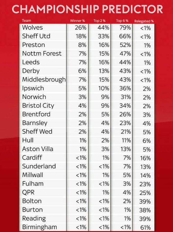 I am not sure what the daftest percentage is in that table, but Cardiff’s 16% chance of relegation would be my choice.